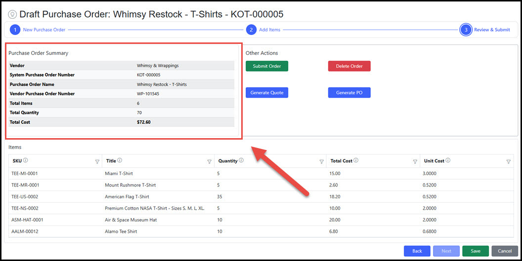 | Step 3 - Purchase Order Summary |