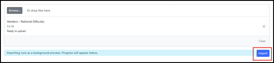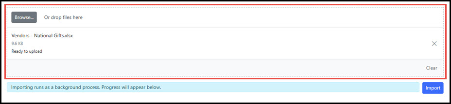 Step 4 - Upload Import File Click Browse or drag and drop the file into the upload area.