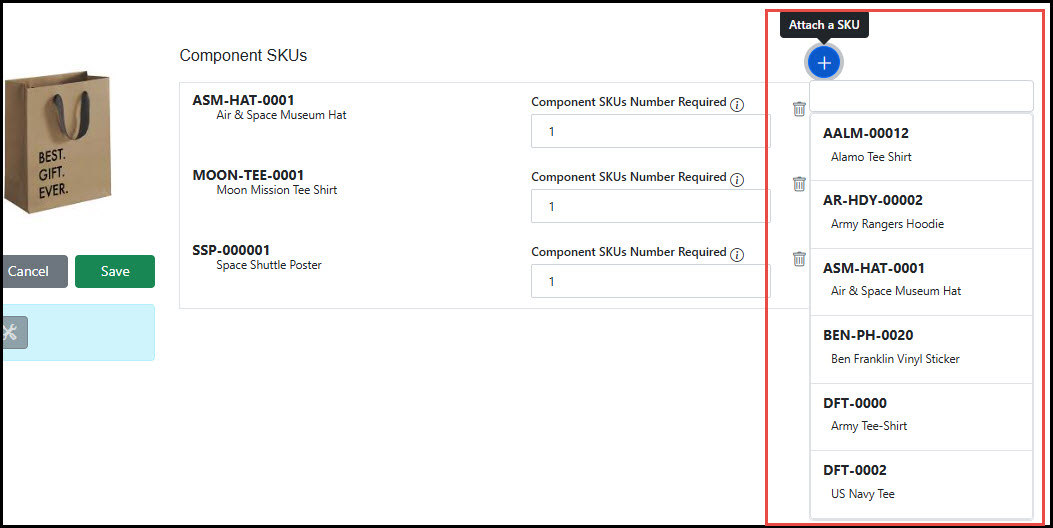 Add the Component SKUs from the dynamic dropdown, add quantities: