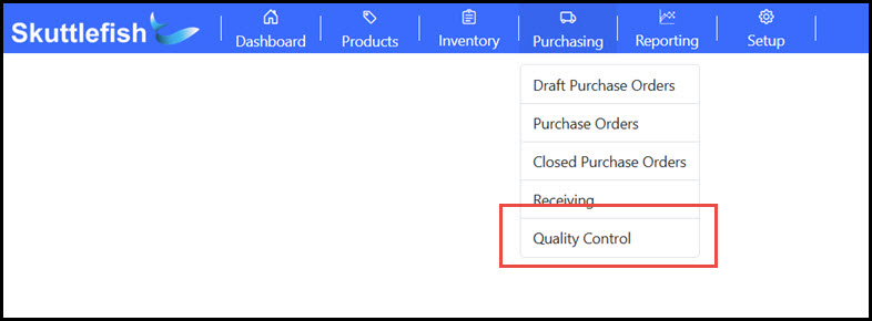The Shipment Quality Control grid is accessible by navigating to Purchasing > Quality Control.