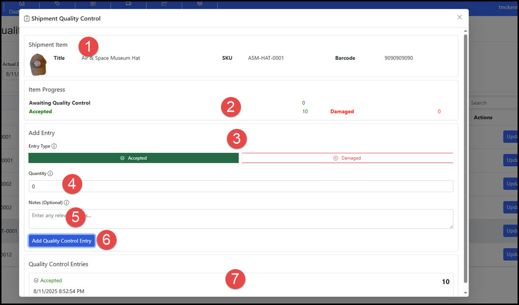 - Quality Control Entries: Log of entries for the item in the shipment.